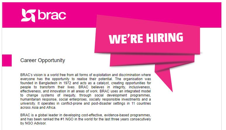 March 15, 2019April 27, 2019 Mst Afsana Brac NGO Job 2019 – Deputy Manager; Migration Programme (Contractual) Brac NGO Job 2019 – Deputy Manager; Migration Programme (Contractual) Share this: Share on X (Opens in new window) X Share on Facebook (Opens in new window) Facebook Like Loading... Related